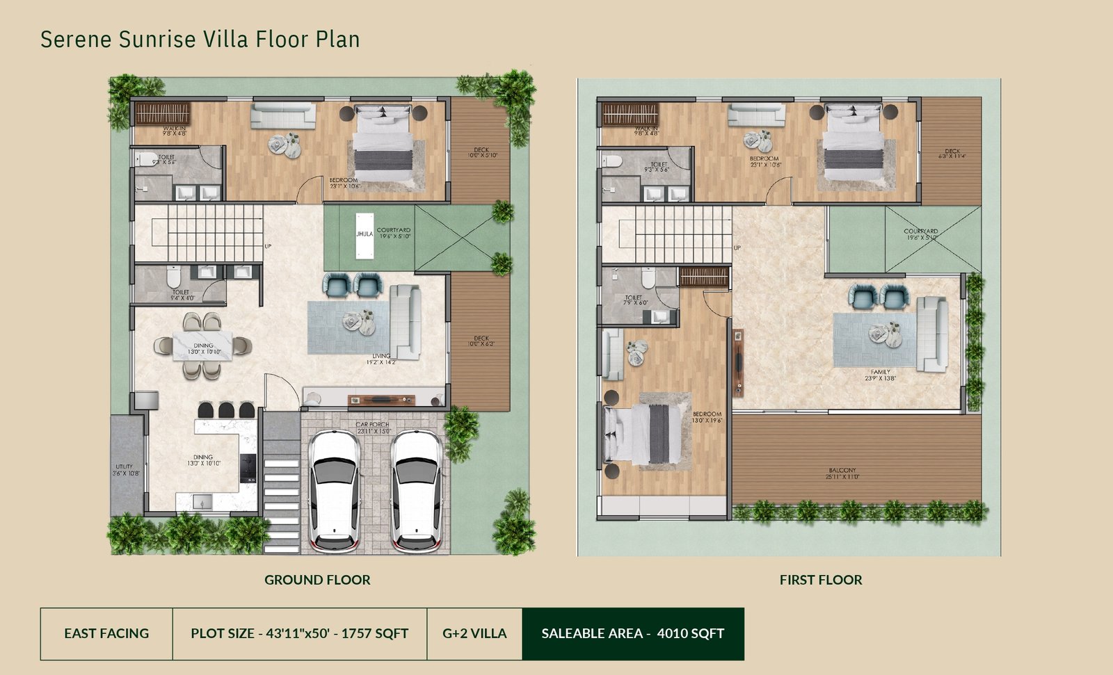 PLOT SIZE - 43'11"x50' - 2200 SQFT